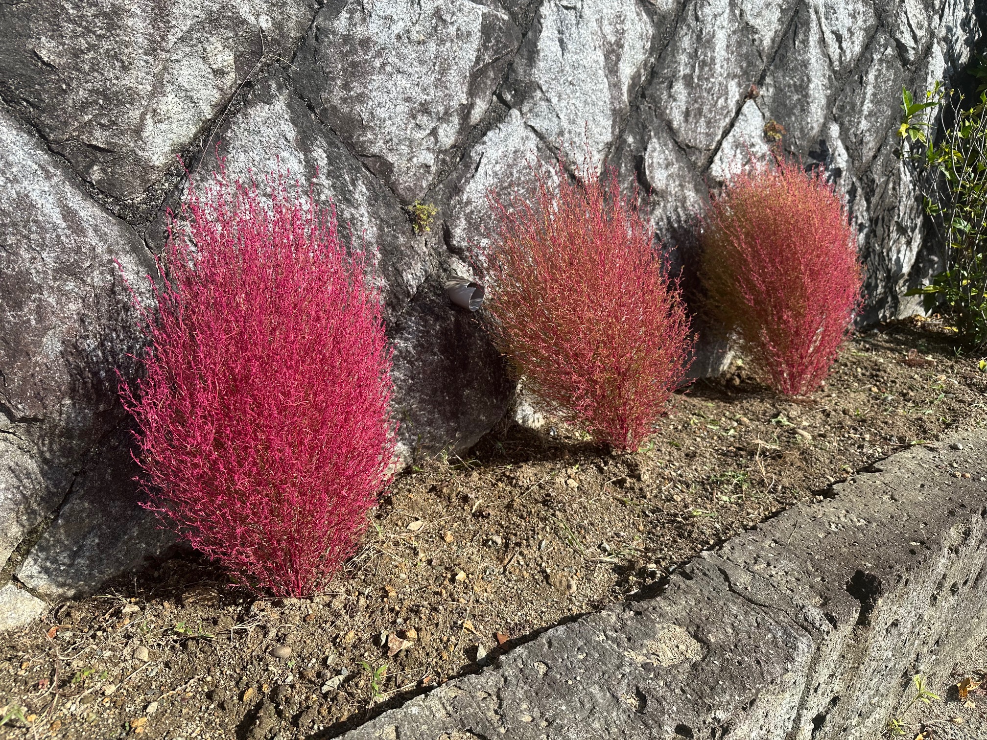 今流行のコキアを植えてみました。早速紅葉して綺麗ですが、一年草のようなのです。 とても大株も見たことがあるのですが、どうなんでしょうね。