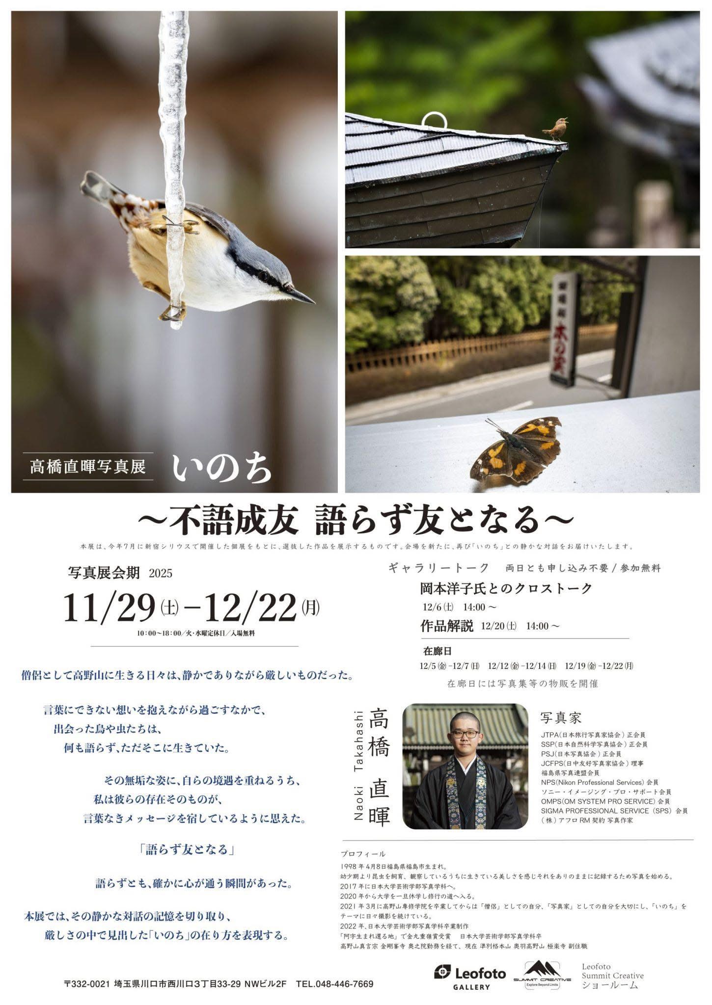 このたび、副住職・高橋直暉による写真展 「いのち 〜不語成友 語らず友となる〜」 が開催されます。
