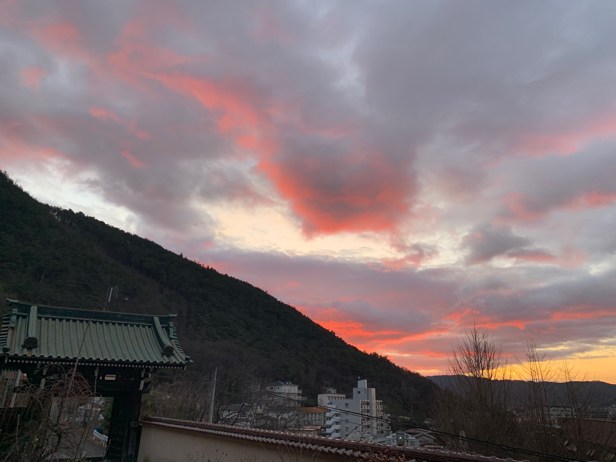 夕焼けがきれいでした。 朝晩はかなり冷え込んできました。